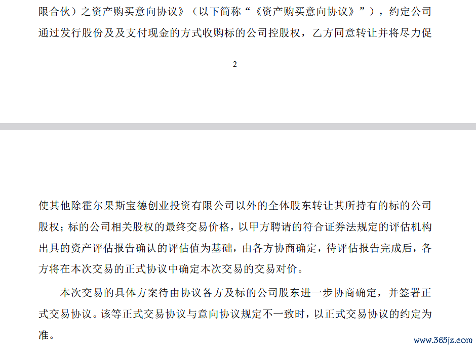 公告特别强调,本次交易的具体方案待由协议各方及标的公司股东进一步协商确定,并签署正式交易协议。该等正式交易协议与意向协议规定不一致时,以正式交易协议的约定为准。
