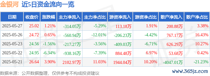 本站消息证券配资服务网,截至2025年5月27日收盘,金银河(300619)报收于25.02元,上涨1.21%,换手率2.18%,成交量2.39万手,成交额5937.4万元。