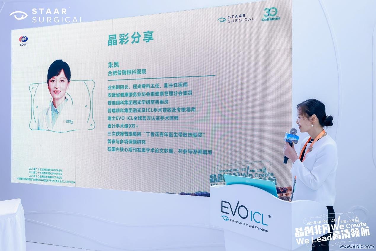 有晶体眼人工晶体植入术是目前主流的眼内屈光手术之一,因其对眼部组织创伤较小、可逆性良好、可预测性良好等优势,在当前屈光手术中的占比正逐年稳步上升,这充分表明其安全性和有效性已经得到了患者和医生的广泛认可。在2025年COOC会议上,廖荣丰院长分享了安徽省首例国产睫状沟固定型有晶状体眼人工晶状体——龙晶有晶状体眼人工晶状体手术,患者术后视力恢复良好,实现了视觉质量明显提升。ICL 晶体植入手术作为一种先进的近视矫正方式,近年来受到了广泛关注。在眼内屈光手术的专题讨论中,朱凤副院长结合临床上ICL手术方面的案例经验,围绕中低度ICL晶体手术重点注意事项展开了深入分享,详细讲解了 ICL 晶体的特性、手术适应证的精准把握以及手术操作的关键要点,为与会者提供实践参考,并就相关问题进行了互动交流。